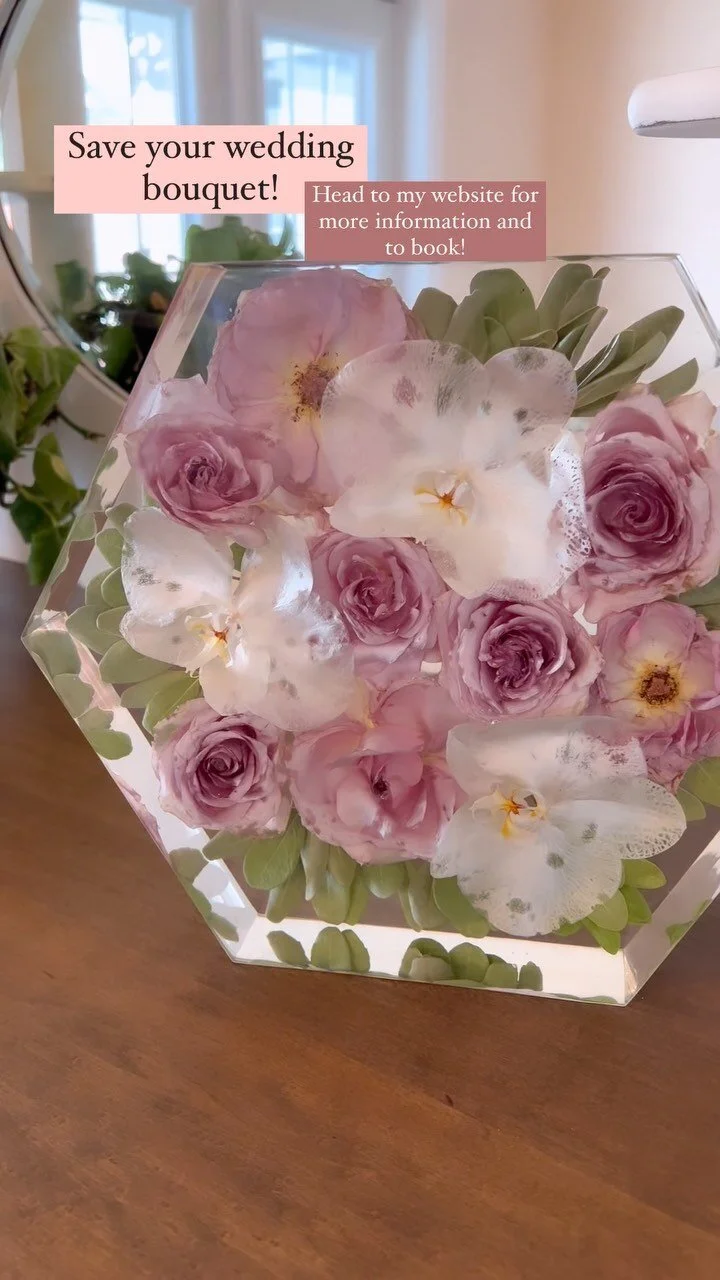 Wild Petals Boutique offers custom flower preservation for weddings and other special occasions. Your flowers are preserved in resin to create beautiful keepsakes.